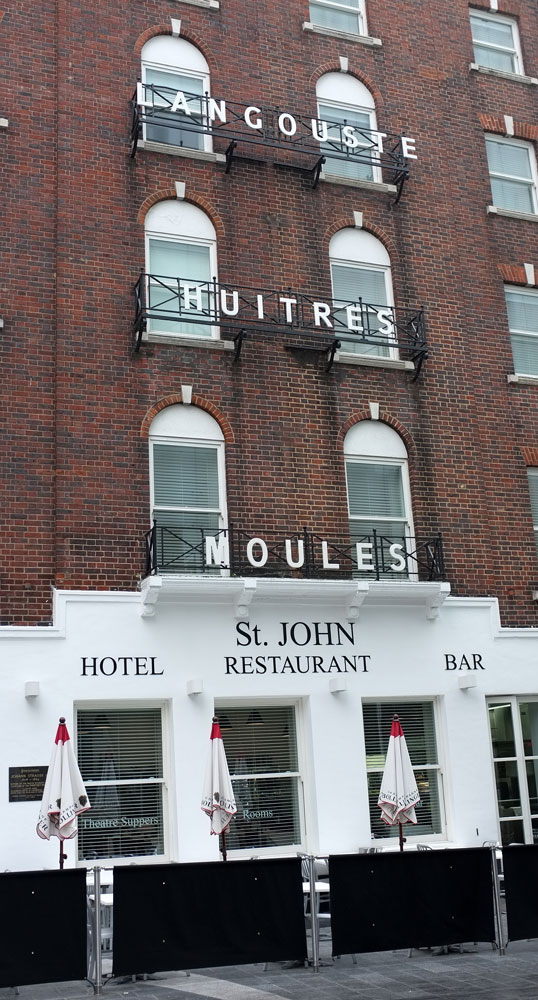 Before it became ‘St John Hotel’, the building housed Manzi’s, a high quality fish restaurant. One day Mr. Manzi sold everything, and headed off to Monte Carlo, giving to Fergus Henderson and his business partner Trevor Gulliver the opportunity to try out their hotel and restaurant concept in Central London.