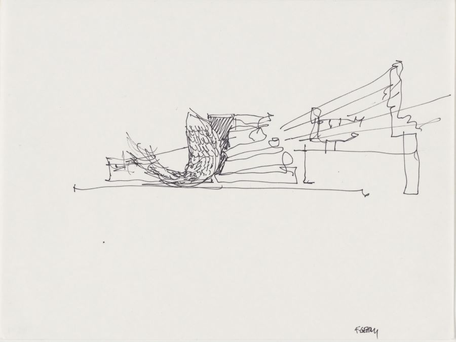 Frank O. Gehry. Sketch for Fishdance Restaurant, Kobe, Japan, Exterior perspective. 1986-87