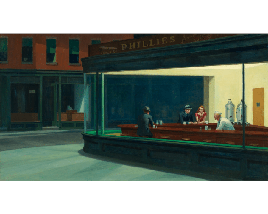 The Art Institute of Chicago’s ‘Nighthawks’ page is rich in material. I quote the introductory paragraph.