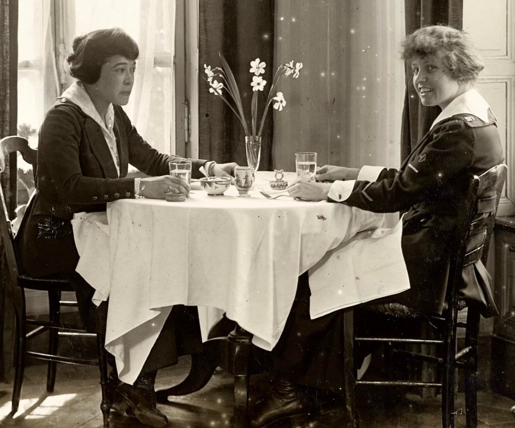 Two Signal Corps staff eating dinner. 136 Rue Jean Jaures. World War I. Brest, France in 1919.