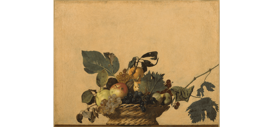 ‘This is probably the most famous painting in the collection of Cardinal Federico Borromeo, which formed the original nucleus of the Pinacoteca Ambrosiana. It is considered to be a sort of prototype of the “still life” genre. It shows a wicker basket brimming with fruit and leaves, rendered with great realism and attention to detail. This almost conflicts with the abstract neutral background of the painting and with the line of colour the basket itself is resting on, and from which it juts out. The founder of the Ambrosiana mentions this extraordinary painting many times in his writings and says he has searched in vain for a work that can bear comparison to it. But, he writes “for its incomparable beauty and excellence, it remained alone”. The painting has been interpreted in many different ways, some of which are religious: the extreme realism with which the fresh fruits are placed alongside those that are worm-eaten, and the leaves that gradually dry out and shrivel, give tangible form to the inexorable passing of time.’