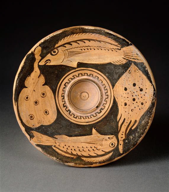 Dish with skate, electric ray, perch and red mullet, 350 – 325 BC