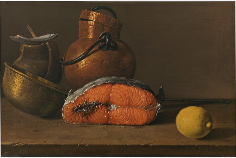 Meléndez, Luis Egidio, Still Life with Salmon, Lemon and three Vessels, 1772, Oil on canvas.