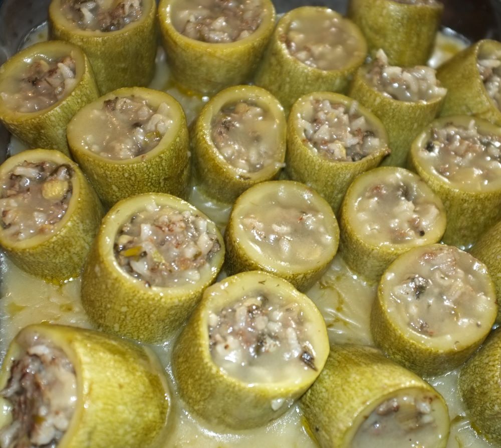 At the end I prepare a light egg-lemon sauce, using the liquids of the zucchinis.