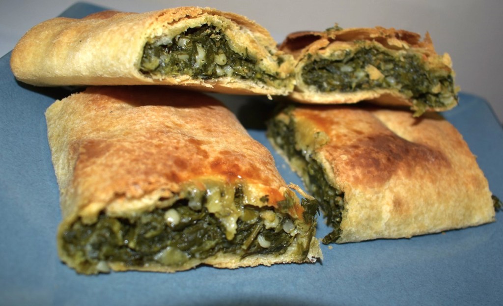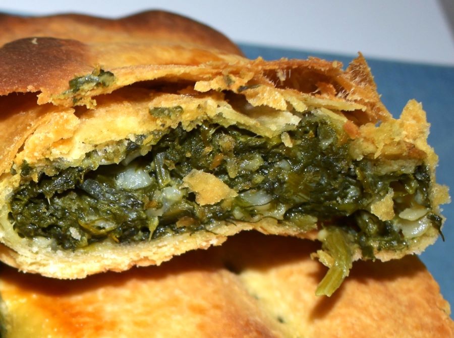 This is about a traditional Greek dish, a pie made with fresh aromatic greens and herbs. It is easy to make, cheap, and delicious. There are two basic versions, one is the simple, which has only greens, the other is the rich, which has feta cheese and eggs in addition to the greens. I prefer the simple version because I can taste and smell the greens better.