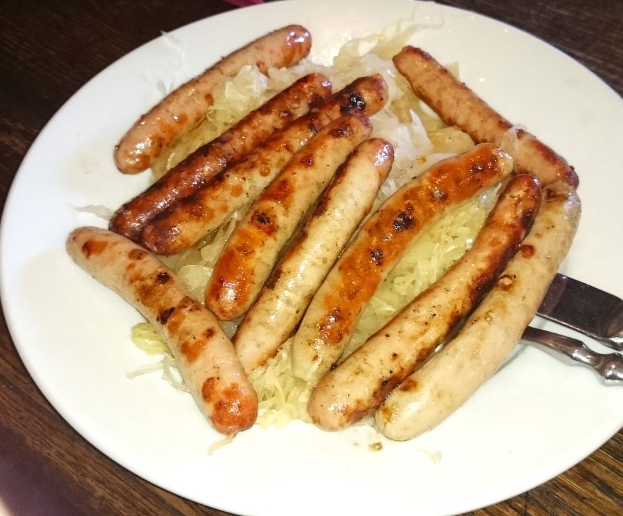 The grilled pork sausages are served with sauerkraut, sour cabbage that is smooth and tasty. The problem with these sausages is that you cannot stop eating the until it is too late.