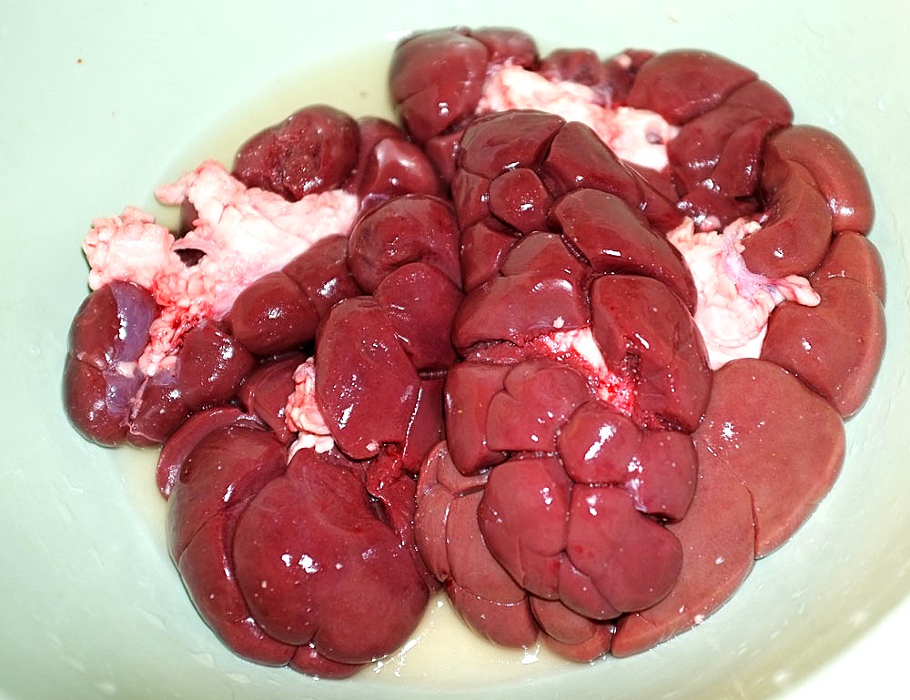 After the kidneys were marinated, I seared them in a hot pan and chopped them.