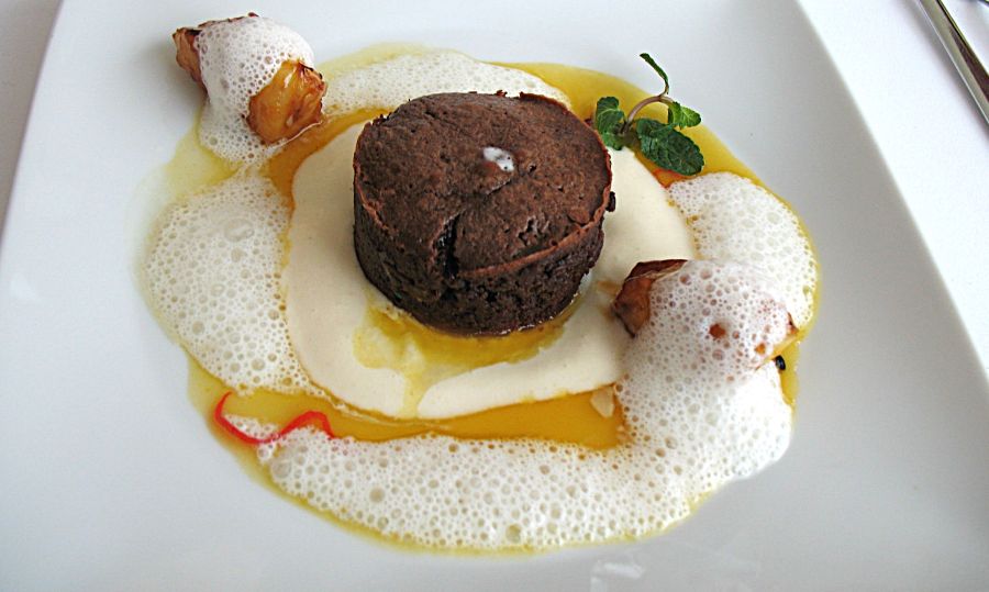 The Hot chocolate desert, with fried bananas and bitter sweet foam, prepared a la minute, was a fitting conclusion to a delicious meal.