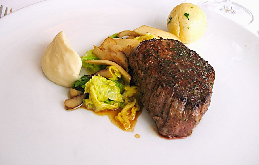 Free-range beef fillet with mushrooms, celery and semolina crack dumplings was the last savoury dish. The fillet was cooked medium to rare, the knife was practically not needed, you could cut through the flesh with the knife as if it were butter!