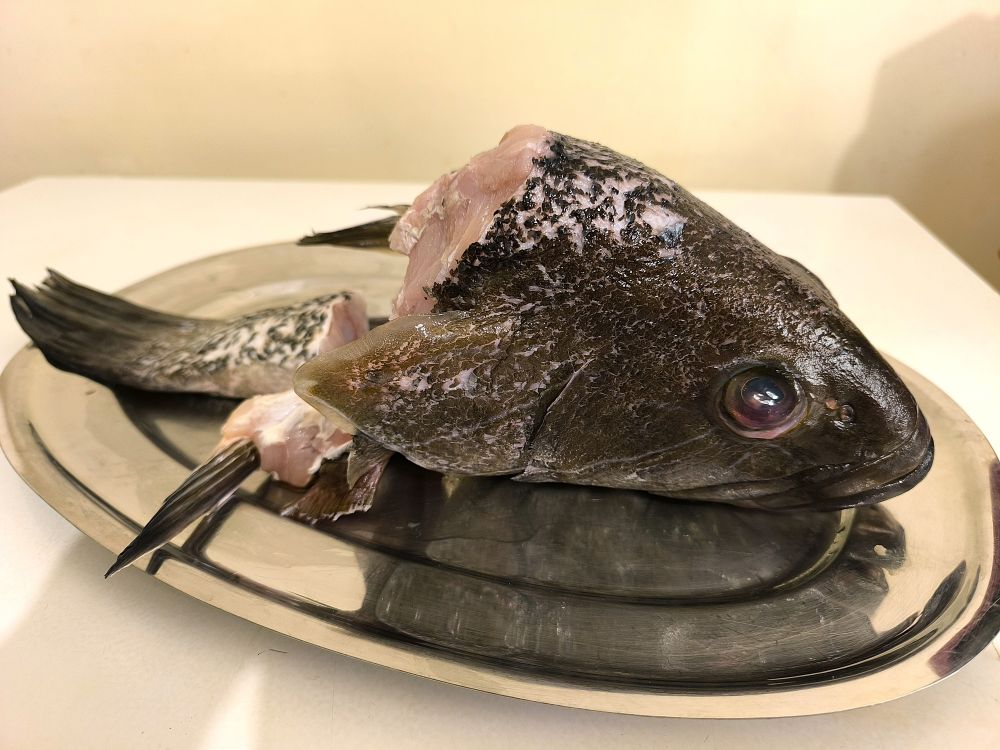 The soup is made with the head and the tail of a 4 kilo white grouper.