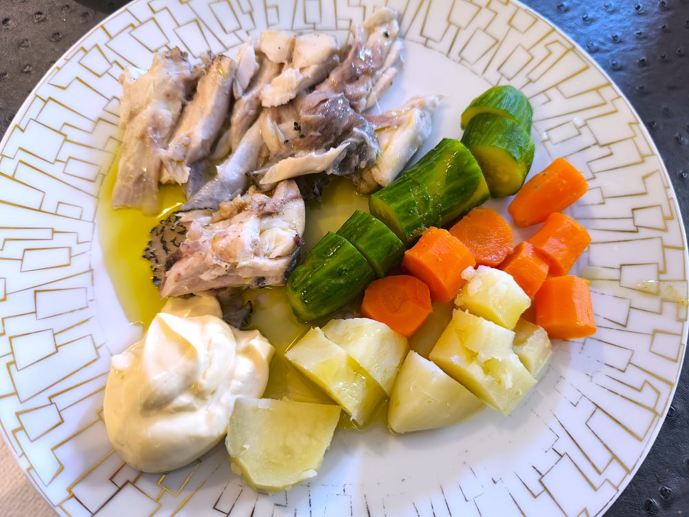 White Grouper, Carrots, Zucchinis and Potatoes, served with Mayonnaise